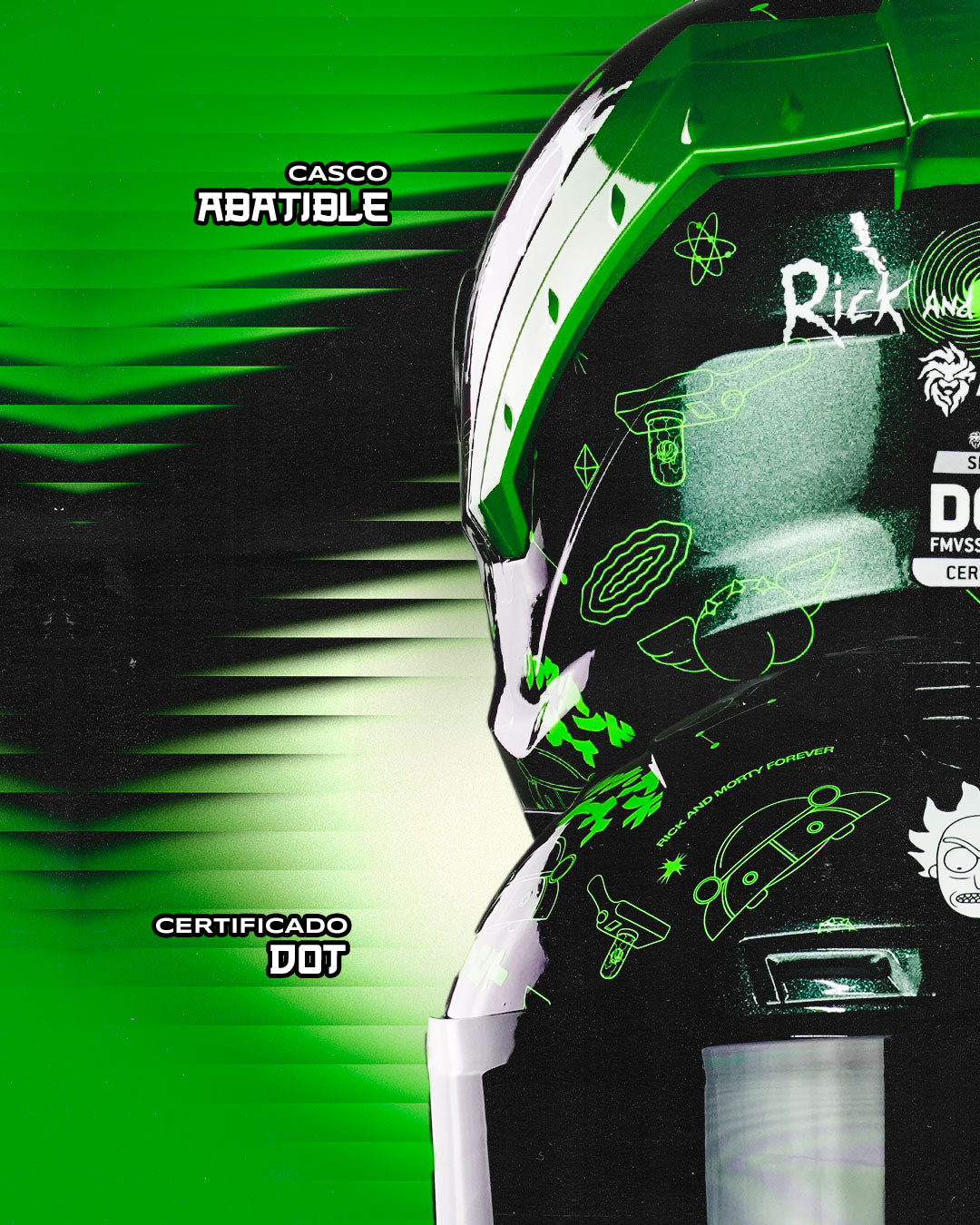 Explora dimensiones desconocidas y domina el camino con el nuevo casco abatible SNOW Rick Sánchez, una fusión entre diseño galáctico y tecnología avanzada. Porque si vas a rodar por este universo, hazlo con estilo, irreverencia y máxima seguridad.