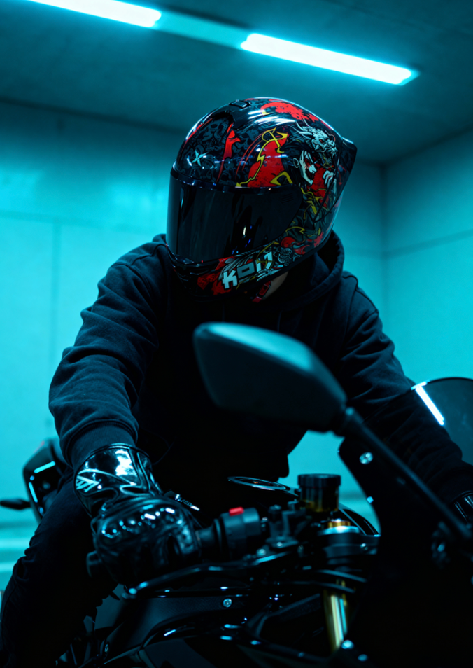 Cada detalle del KOV Yakuza está pensado para ofrecer el máximo rendimiento y protección, combinando arte japonés contemporáneo con tecnología de seguridad avanzada. Su estructura integral brinda cobertura total, mientras su interior ergonómico asegura comodidad y ventilación óptima en cada rodada.